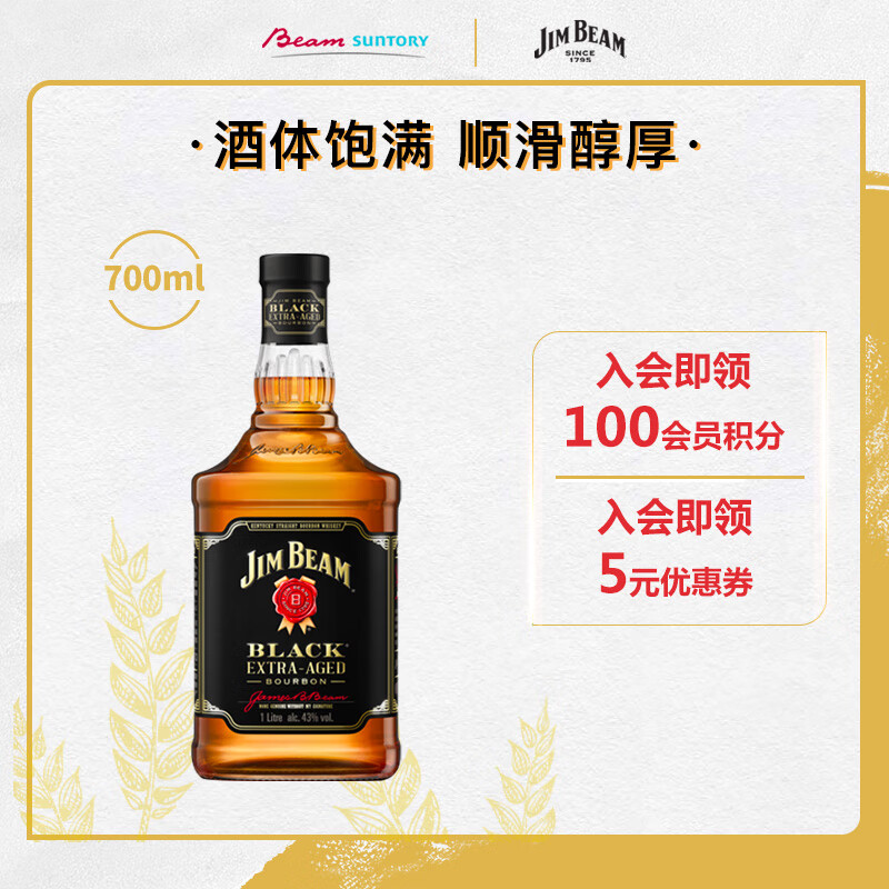 金宾(Jim Beam)波本 威士忌 黑牌 调和型 洋酒 700ml价格:119.00元!