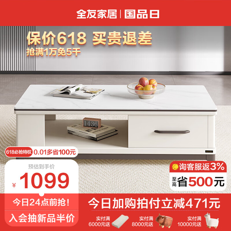 全友家居 茶几简约北欧小户型客厅边几岩板台面茶几储物柜子120709C价格:1570.00元!