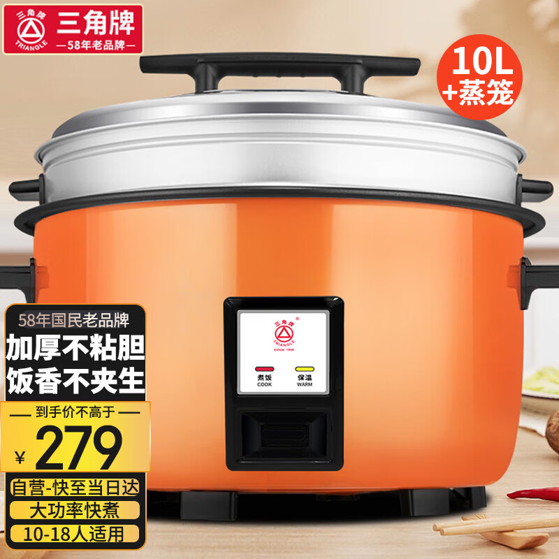 三角牌(Triangle) 电饭煲大容量10人以上电饭锅食堂工厂商用大电饭煲酒店饭店大型超大10升+蒸笼 10-18人用价格:289.00元!