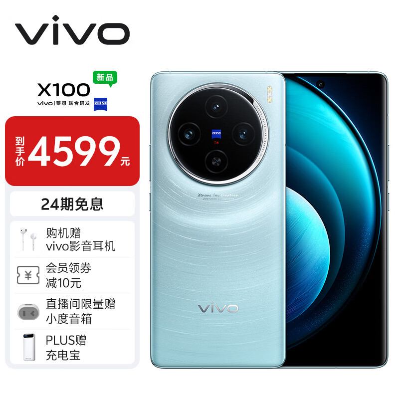 vivo X100 16GB+512GB 星迹蓝 蓝晶×天玑9300 5000mAh蓝海电池 蔡司超级长焦 120W双芯闪充 拍照 手机价格:4599.00元!