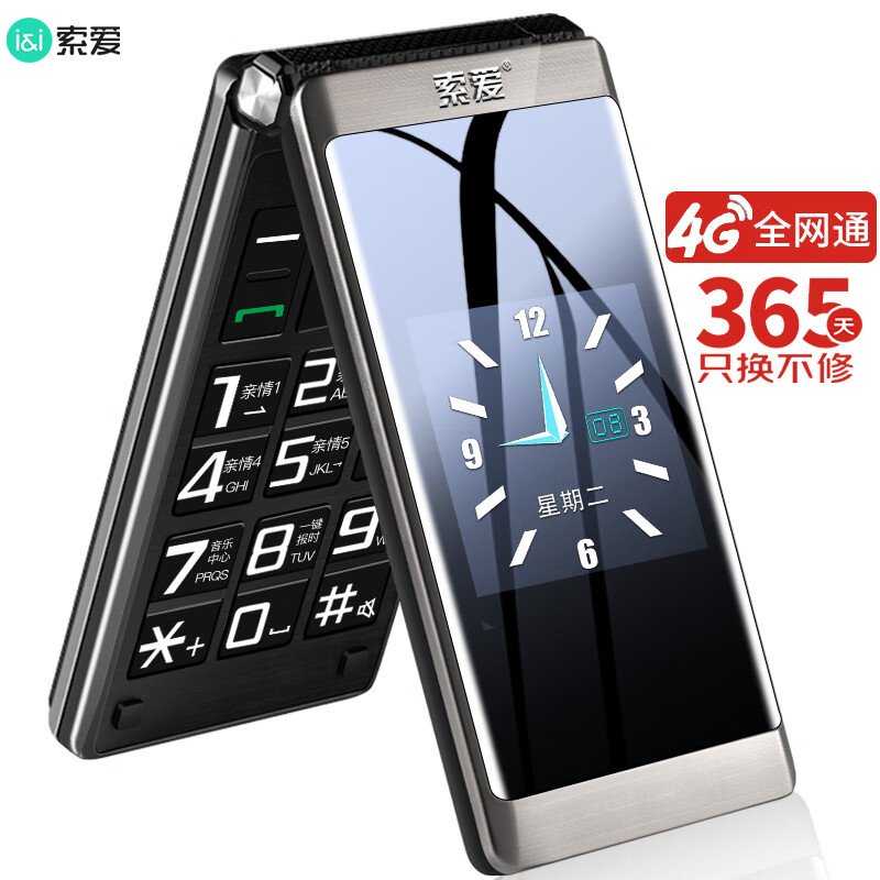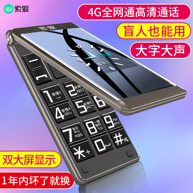 索爱(soaiy)Z6通翻盖老年人手机4G移动联通电信 双卡双待大字大声语音播报 铁灰色价格:269.00元!