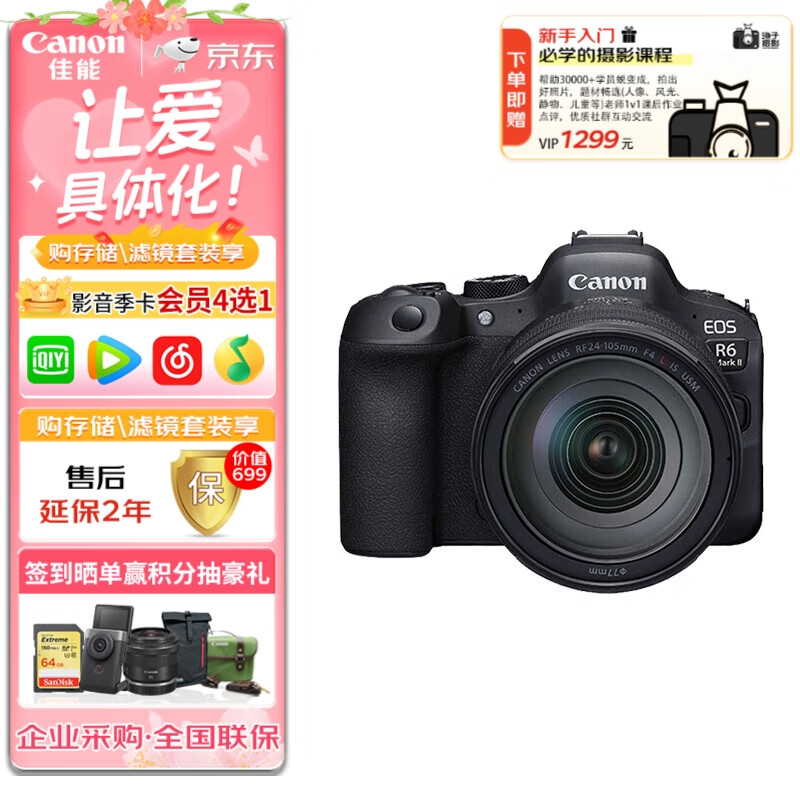 佳能(Canon)EOS R6 Mark II 24-105mm F4 L USM镜头套机 扫街旅拍套装价格:24599.00元!