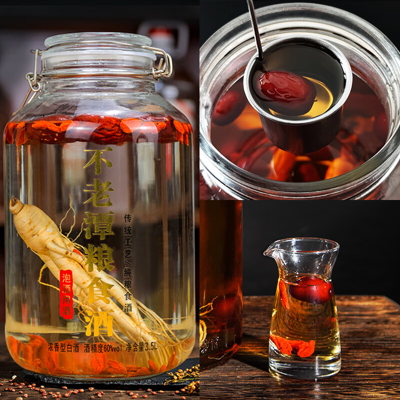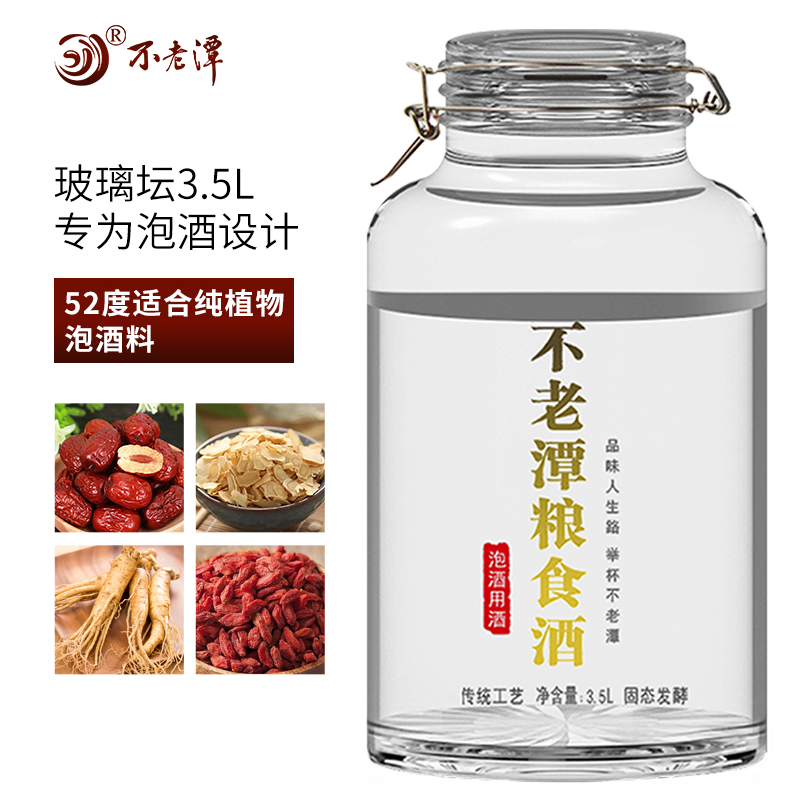 不老潭粮食酒 浓香型高度玻璃坛泡酒原浆高粱散装白酒52度 3.5L价格:189.00元!