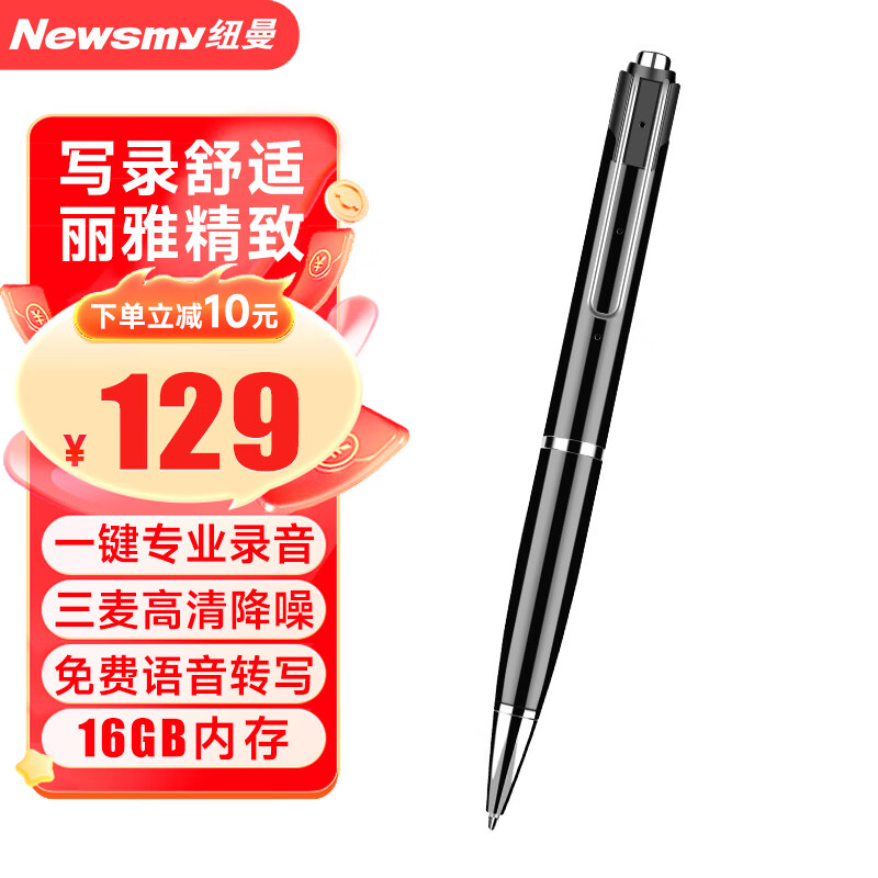 纽曼录音笔16G RV100精英版 专业录音高清降噪 一键录音 边写边录 语音转文字 会议录音器 黑价格:139.00元!