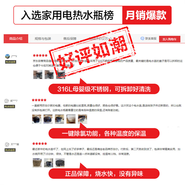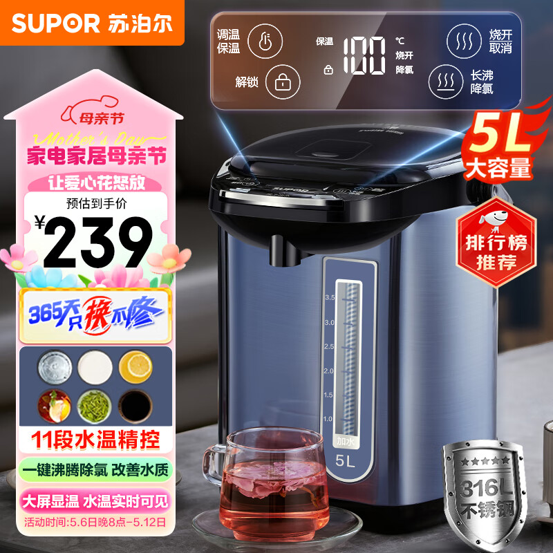 苏泊尔(SUPOR)电热水瓶 家用烧水壶电热水壶开水壶电动饮水机5升大容量保温一体全自动恒温 316L不锈钢SW-50T80A价格:239.00元!