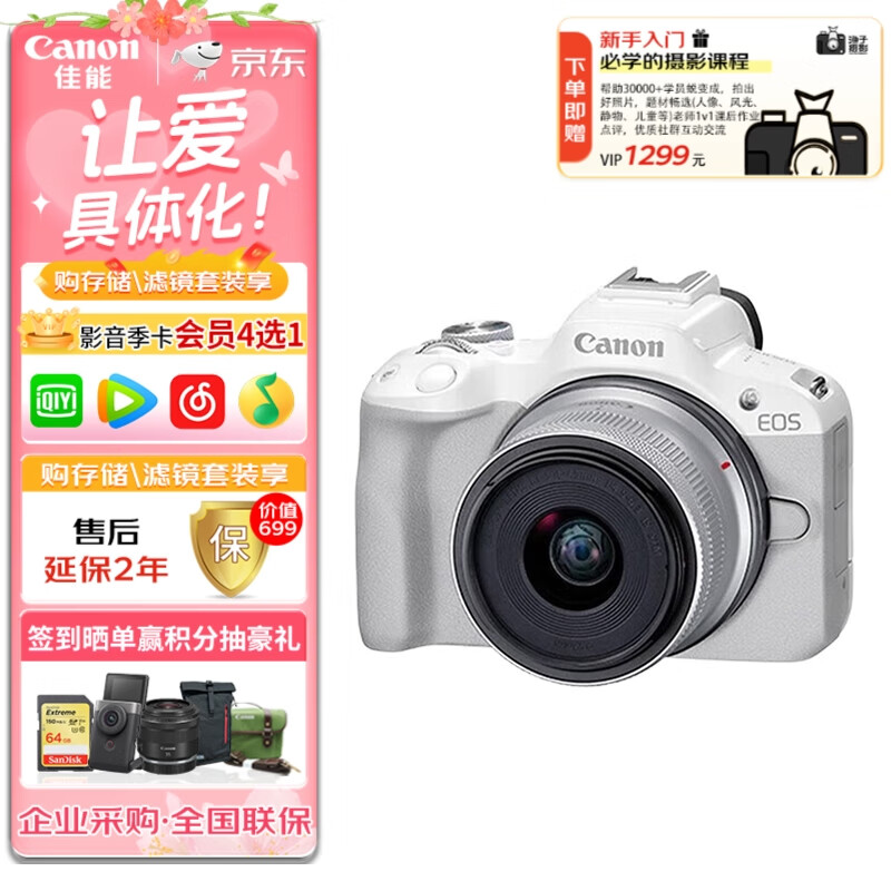 佳能(Canon)EOS R50 RF 18-45mm套机【白色】扫街拍摄套装价格:7899.00元!