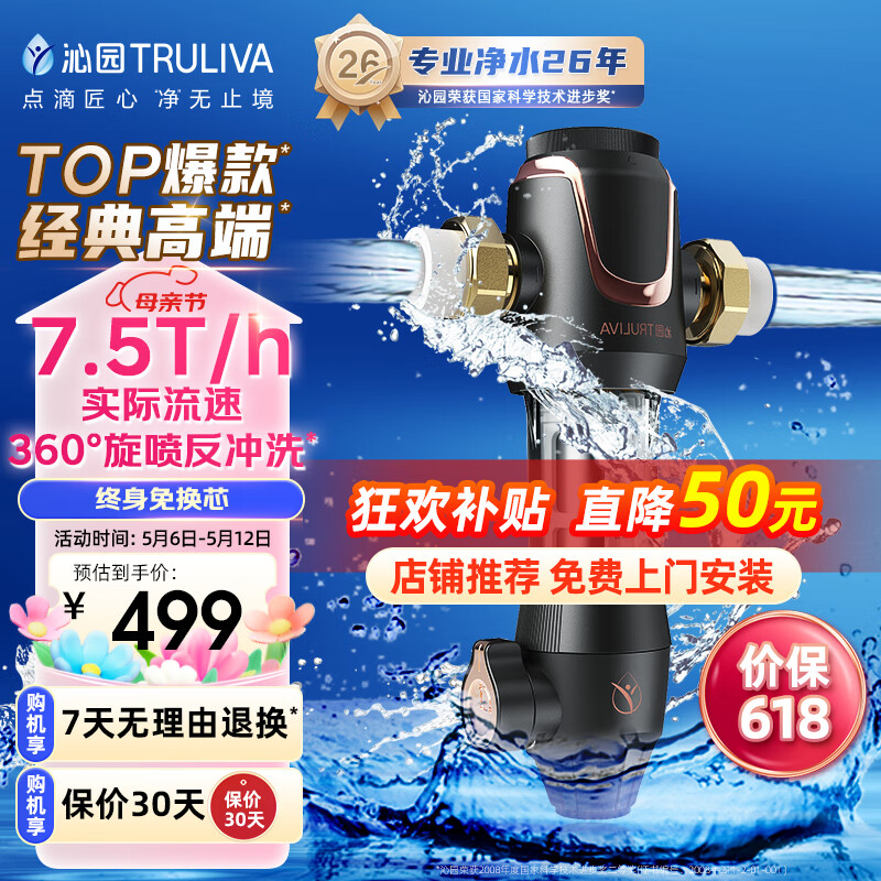 沁园(TRULIVA)升级款顶配前置过滤器 7.5吨/小时大流量 全屋家用净水器P-A5510价格:450.00元!