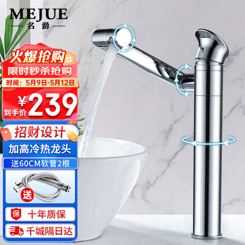 名爵(MEJUE)黄铜主体冷热面盆水龙头 720°旋转洗脸盆台上盆水龙头Z-012312价格:289.00元!