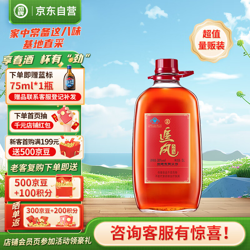 劲牌 追风八珍酒 38度 5L 量贩装价格:249.00元!