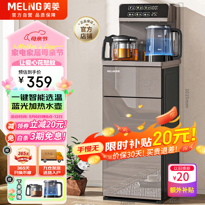 美菱(MeiLing)茶吧机 家用饮水机多功能智能遥控双出水口下置水桶立式 轻奢大屏触控一键选温MY-C552价格:379.00元!