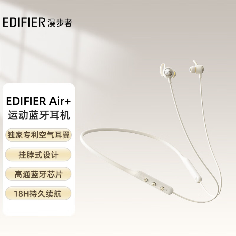 漫步者(EDIFIER)EDIFIER Air+颈挂式运动蓝牙耳机 挂脖式设计 空气耳翼结构 月光白价格:168.00元!