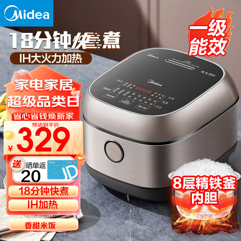 美的(Midea)电饭煲 家用IH加热智能触控家用升级预约多功能电饭锅一级能效 立体IH大火力丨18分钟快煮电饭煲 3L价格:539.00元!