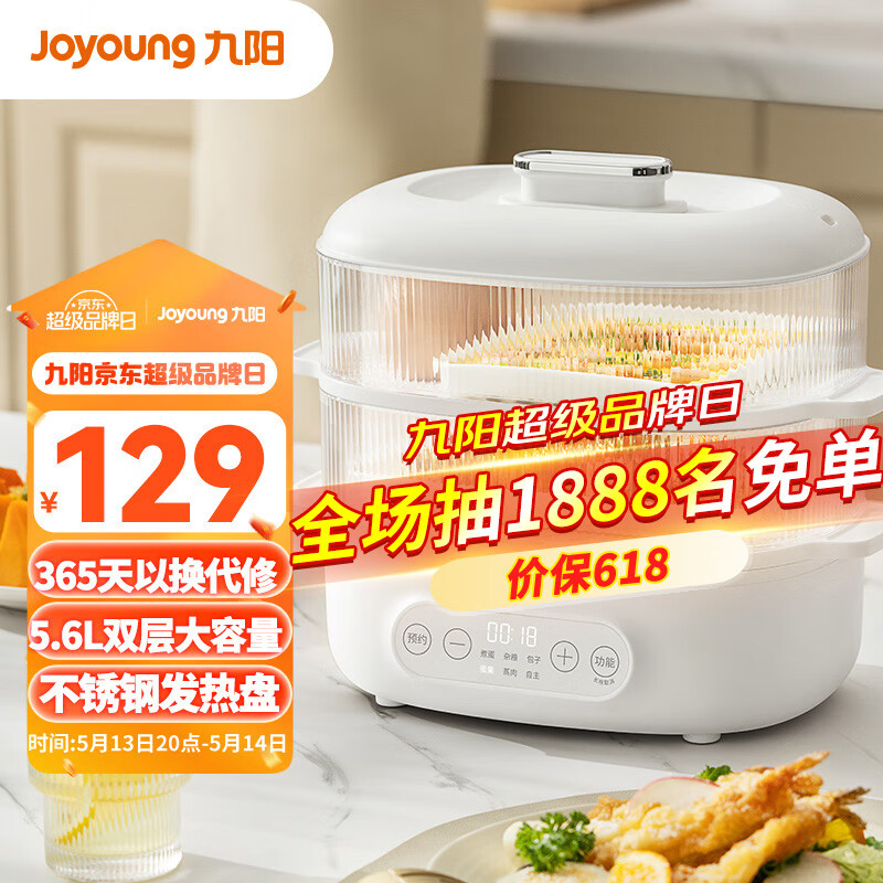 九阳(Joyoung)煮蛋器 蒸蛋器 家用电蒸锅 双层定时 智能预约 早餐蒸煮一体机 多功能蒸包子蒸锅 ZD18-GE550价格:129.00元!