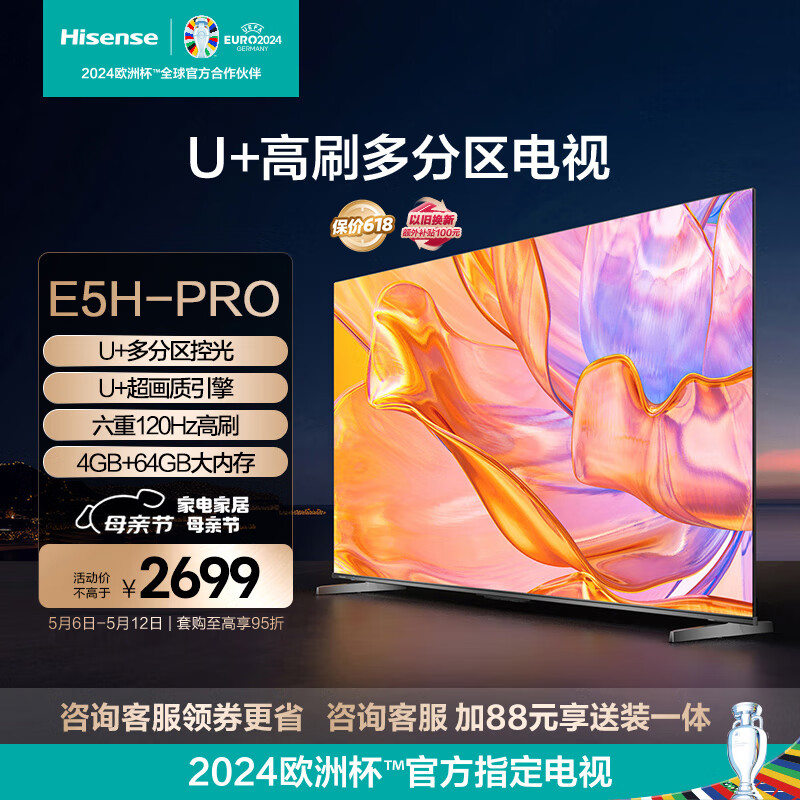 海信电视55E5H-PRO 55英寸 多分区控光 120Hz高刷 4K高清 智慧屏 液晶智能平板电视机价格:2689.00元!