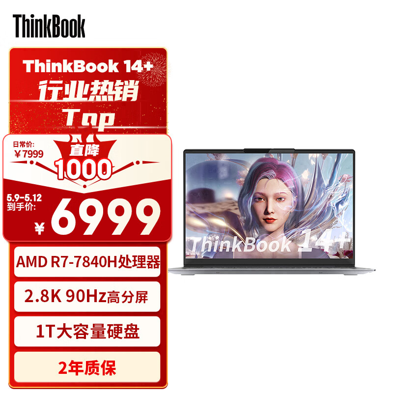 ThinkPad联想笔记本电脑ThinkBook 14+ 锐龙版 14英寸便携轻薄办公本R7-7840H 32G 1T RTX3050 2.8K 90Hz价格:6999.00元!