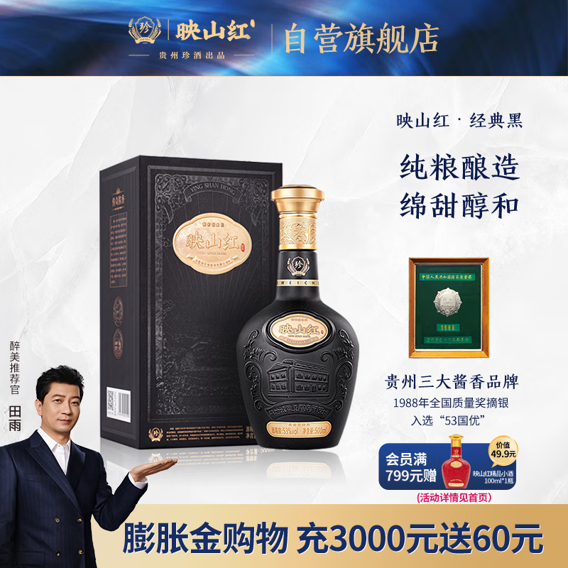 珍酒映山红·经典黑 53度酱香型白酒500ml*1单瓶装 珍贵酱香 大曲坤沙价格:140.00元!