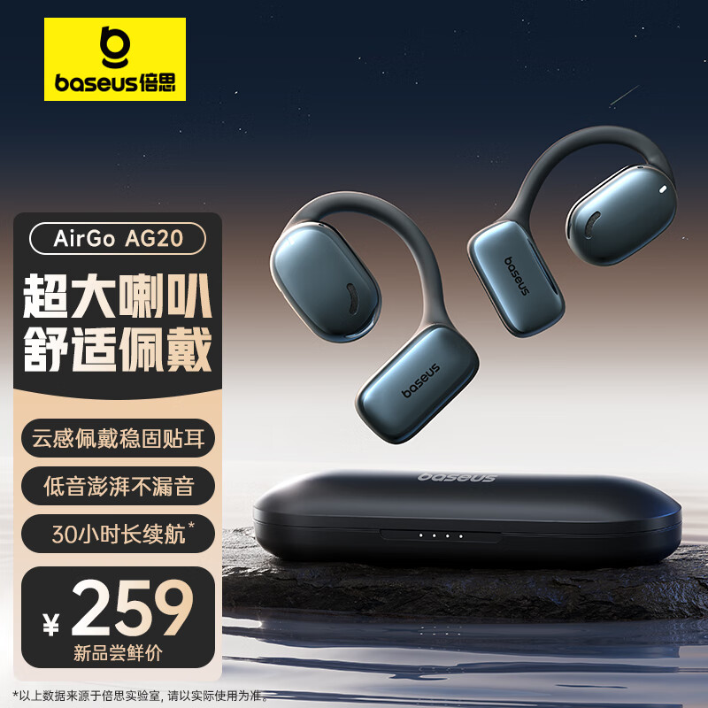 倍思 AG20 开放式蓝牙耳机不入耳骨传导概念挂耳式舒适运动跑步通话降噪长续航 黑价格:239.00元!
