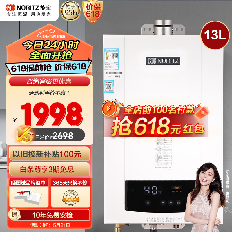 能率(NORITZ)燃气热水器13升 降噪恒温 CPU智能控制系统GQ-13TBG3FEX(JSQ25-TBG3)天然气 防冻家用价格:2198.00元!