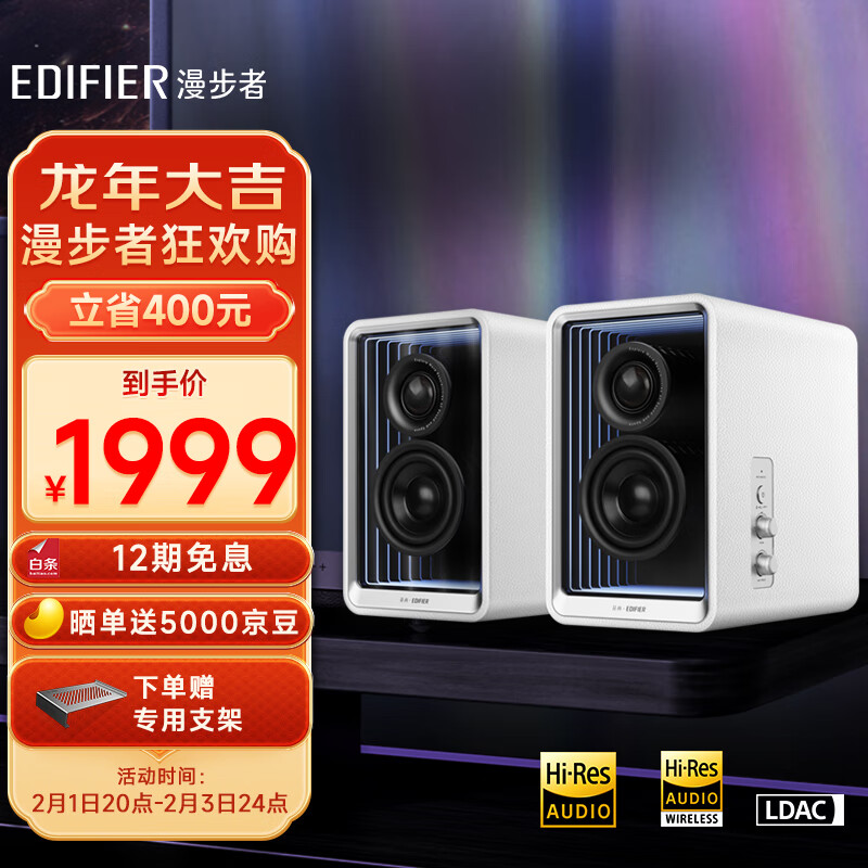 漫步者(EDIFIER)Halo 2.0 深渊监听音箱 蓝牙电脑音响 桌面音响 HIFI级音质 电视音响 客厅音响 破晓白 新年礼物价格:1999.00元!