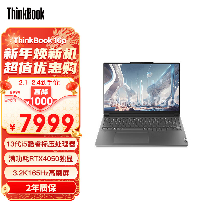 ThinkPad联想ThinkBook 16p 英特尔酷睿i5 16英寸高性能轻薄游戏创作本13代i5-13500H 16G 1T RTX4050 3.2K 165Hz价格:7999.00元!