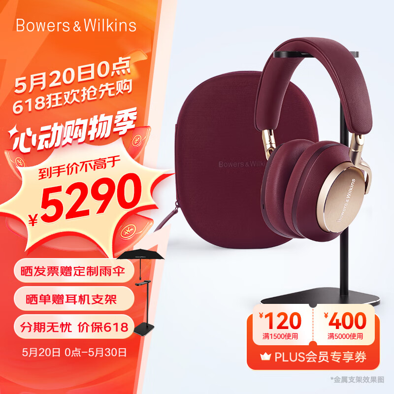 宝华韦健(B&W) Px8 皇家勃艮第 旗舰无线hifi头戴式蓝牙耳机 Bowers&Wilkins智能主动降噪高保真音乐耳麦价格:5290.00元!