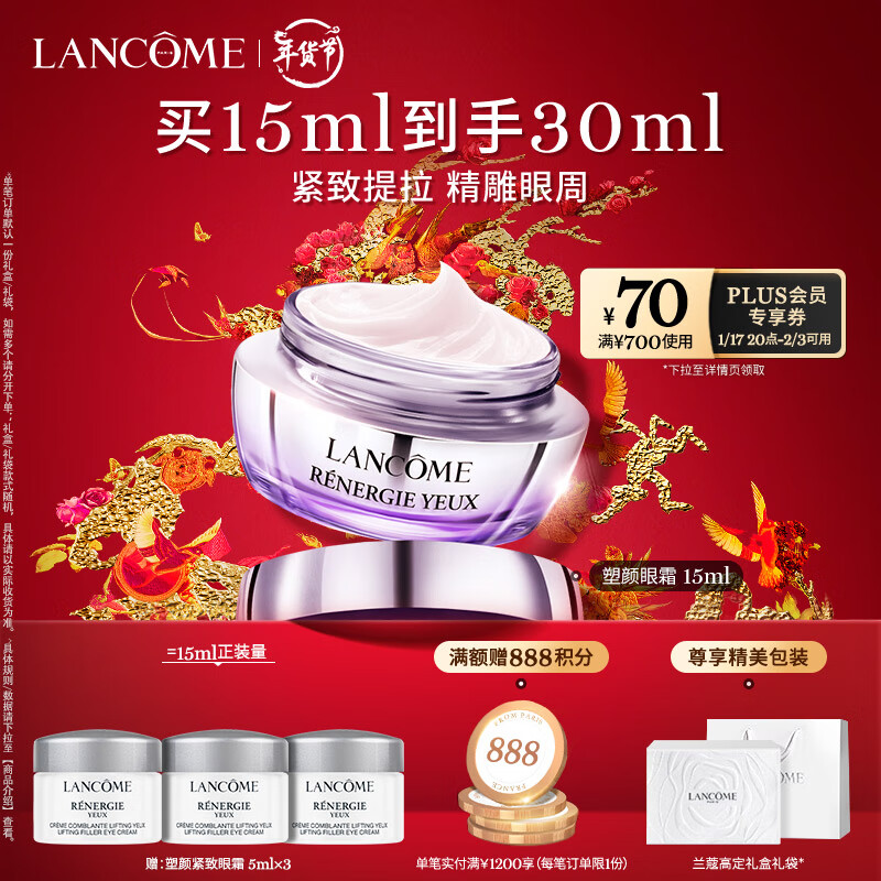 兰蔻塑颜眼霜15ml 紧致提拉眼周保湿 护肤品礼盒生日新年礼物送女友价格:690.00元!