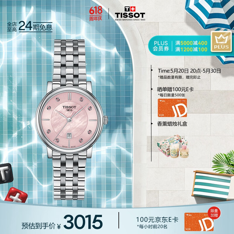 天梭(TISSOT)手表 卡森臻我系列钢带石英女表 520送女友T122.210.11.159.00价格:3350.00元!