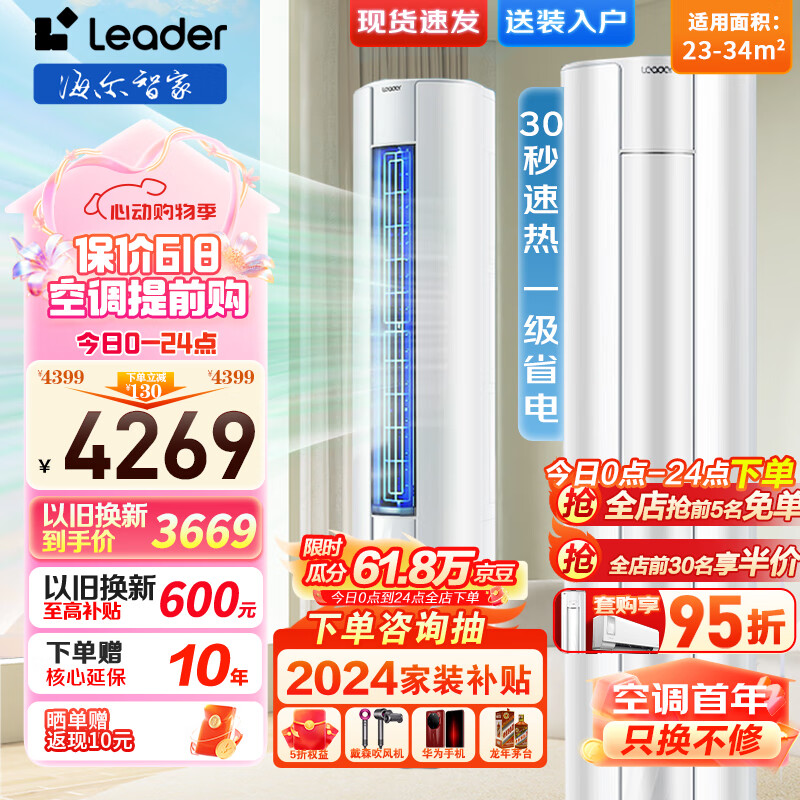 Leader空调海尔出品新一级能效2匹全直流变频冷暖空调APP智控立柜式自清洁 智能防直吹以旧换新50WDB81价格:4299.00元!