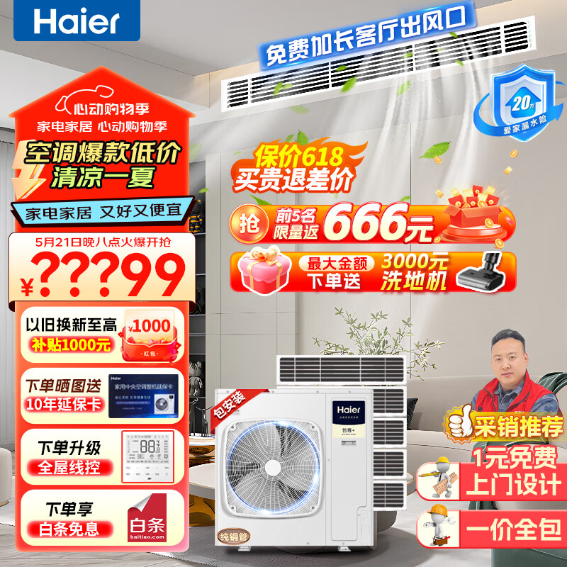 海尔(Haier)中央空调一拖五风管机6匹小多联一级能效全直流变频嵌入式智尊+ RFC140MXSAVB(F)价格:25999.00元!