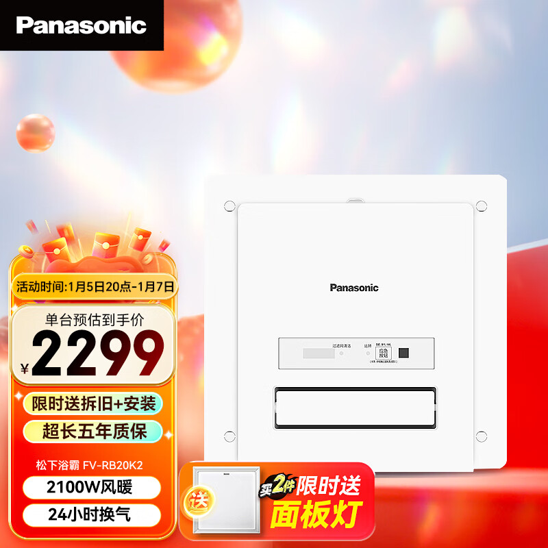 松下(Panasonic)FV-RB20K2 浴霸 风暖 通用吊顶式 多功能暖浴快 珍珠白价格:2499.00元!