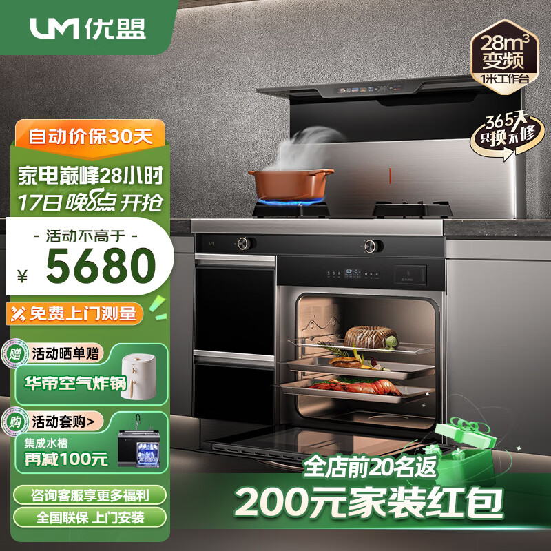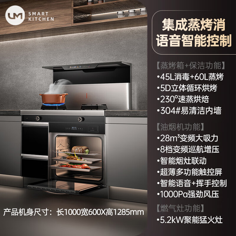 优盟(UM)集成灶蒸烤一体集成灶一体式 家用变频大吸力蒸箱烤箱蒸烤箱一体下排式油烟机燃气灶环保灶 天然气价格:6180.00元!