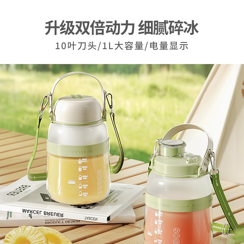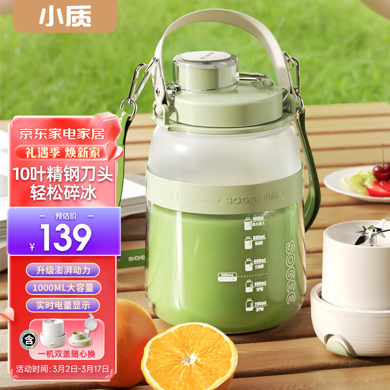 小质10叶刀头榨汁杯榨汁机便携式小型大容量果汁机冰沙机果汁杯搅拌奶昔机水果蔬菜可碎冰家用充电随身 绿色价格:199.00元!