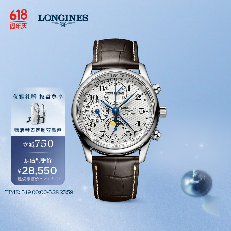 浪琴(LONGINES)彭于晏推荐 瑞士手表 名匠系列 月相机械皮带男表 L26734783价格:28550.00元!