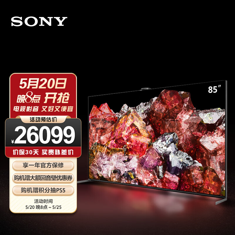 索尼(SONY)【官方直营】XR-85X95EL 85英寸 MiniLED 4K120Hz 旗舰影院电视 智能摄像头 XR认知芯片 京配上门价格:26499.00元!