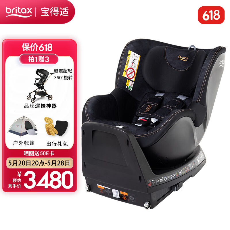宝得适(BRITAX)宝宝儿童座椅0-4岁isize认证正反安装双面骑士plus夜影黑价格:3980.00元!