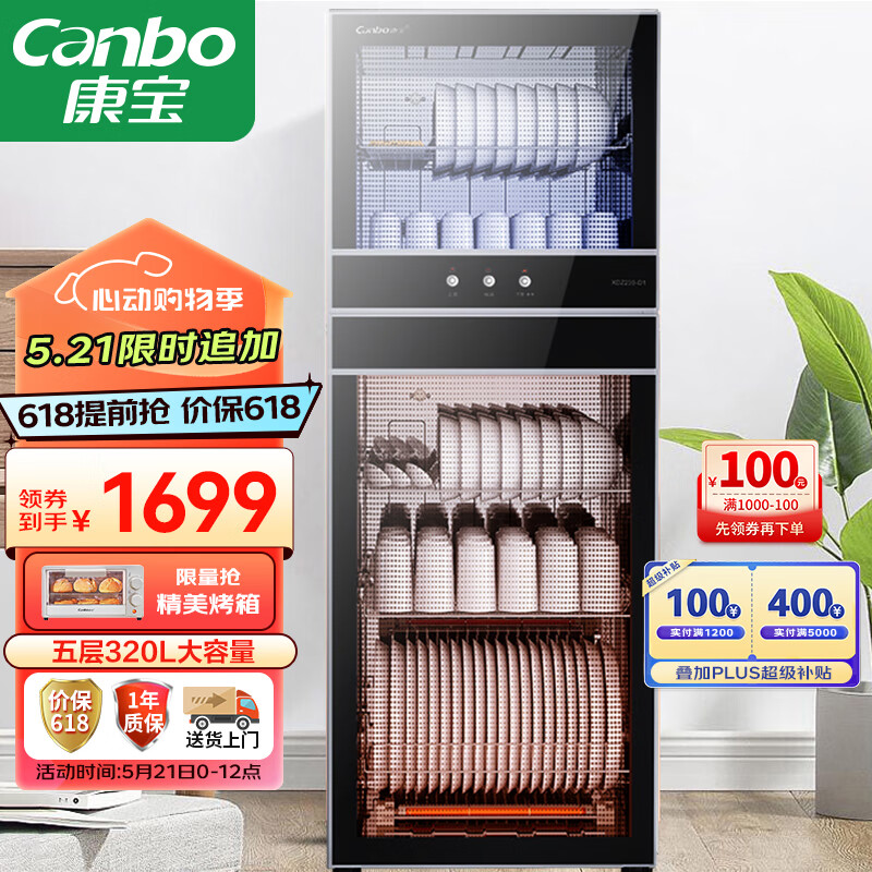 康宝(Canbo)消毒柜 家用 立式消毒碗柜大容量 商用碗筷收纳柜餐具奶瓶茶杯消毒柜双门高温二碗柜XDZ320-D1价格:1799.00元!