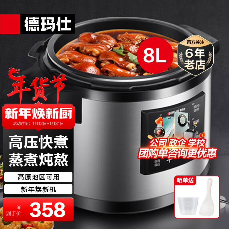 德玛仕商用电锅 电高压锅大容量8L升多功能单位企业食堂饭店高电饭煲锅8-13人用YBD8t-135价格:358.00元!