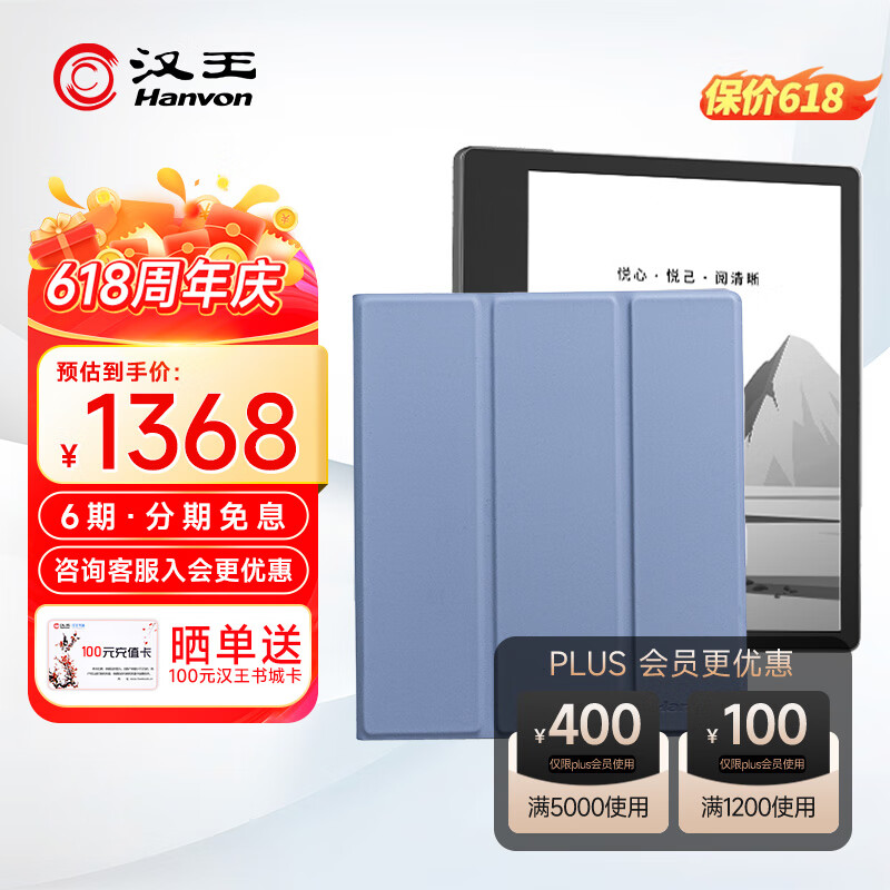 汉王(Hanvon) Clear 7英寸电子书阅读器 墨水屏电纸书 看书学习便携阅读办公本冰山灰支架保护套.套装价格:1368.00元!