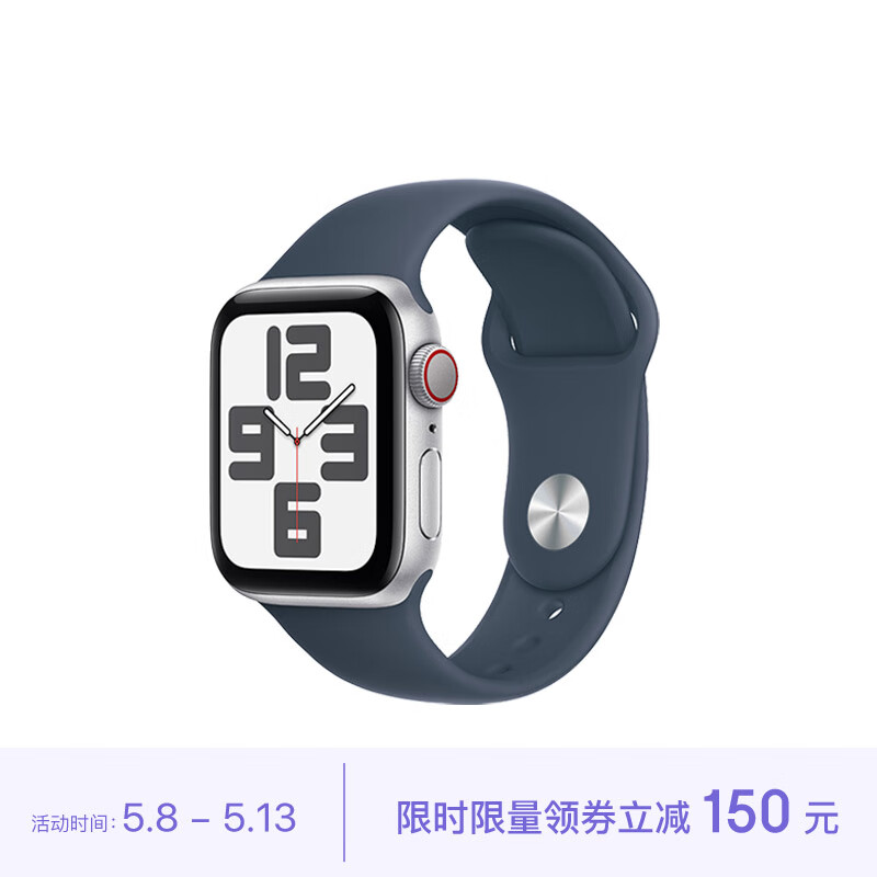 Apple/苹果 Watch SE 2023款智能手表GPS+蜂窝款40毫米银色铝金属表壳风暴蓝色运动型表带S/M MRGK3CH/A价格:2339.00元!