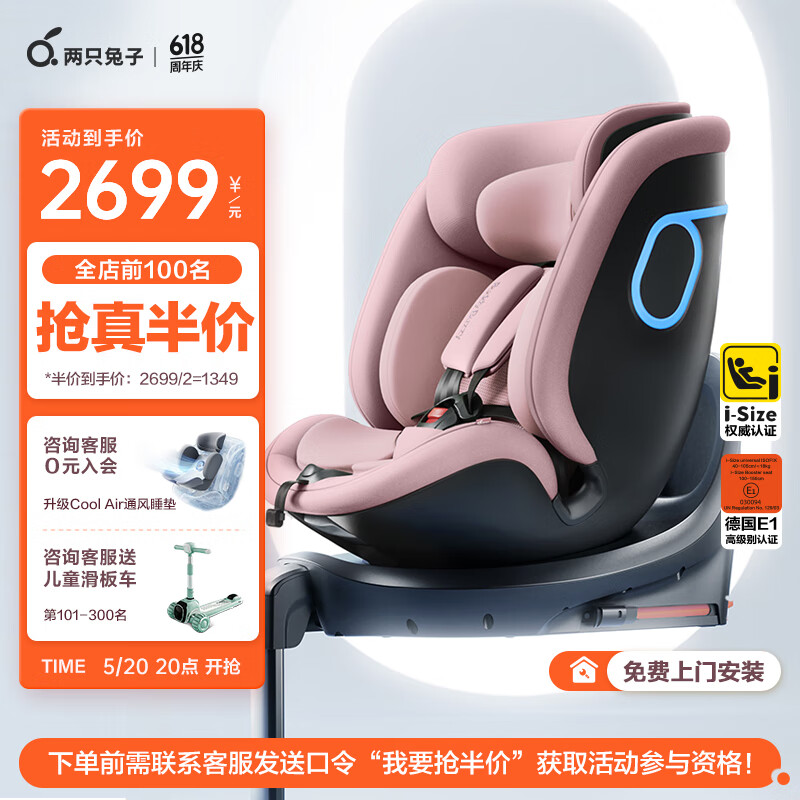 两只兔子求知2智能通风车载婴儿童座椅0-4-12岁宝宝汽车用 冰莓粉价格:4180.00元!
