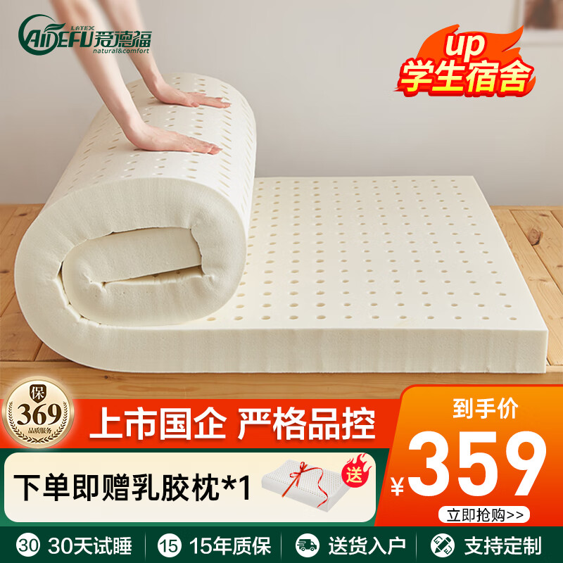 爱德福 乳胶床垫 单人学生宿舍专用床褥加厚0.9m1.2米定制80*190*5价格:409.00元!