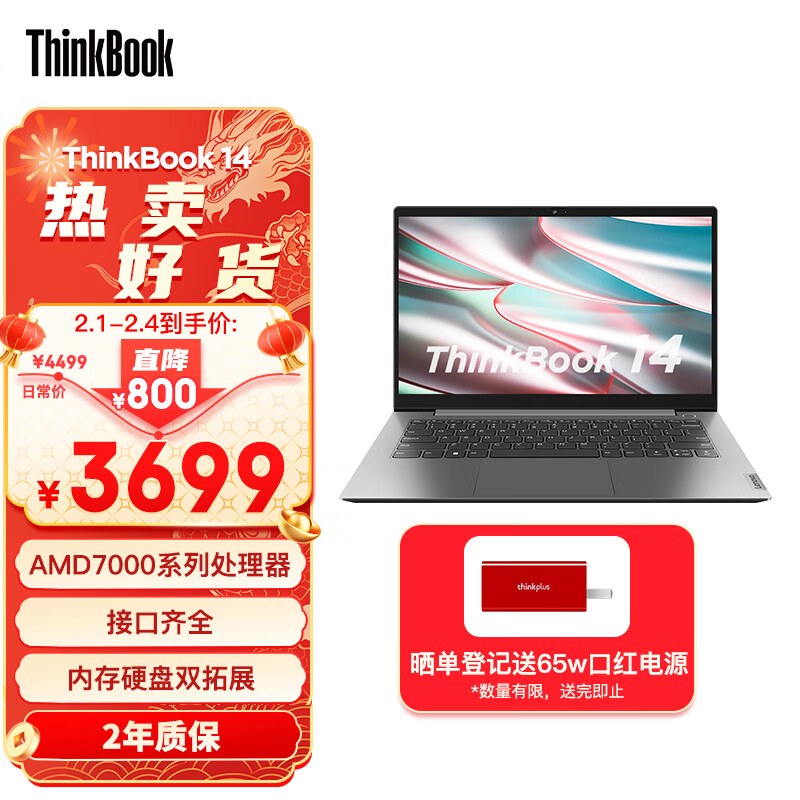 ThinkPad联想ThinkBook 14 锐龙版 14英寸便携轻薄办公学生笔记本电脑(R5 7530U 16G 512G 高色域)价格:3699.00元!