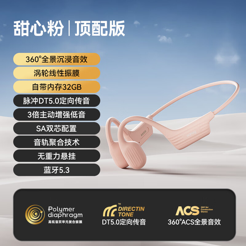 SANAG塞那 蓝牙耳机不入耳开放式气传导无线挂耳式运动跑步降噪防水长续航适用华为 甜心粉 32G价格:229.00元!