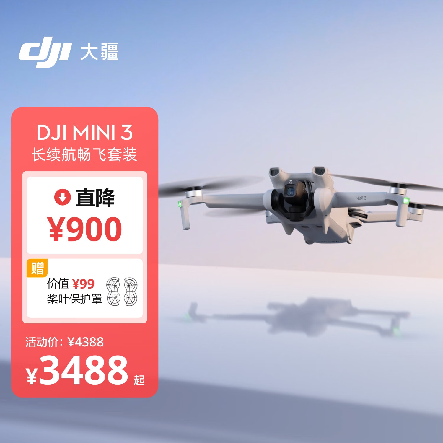 大疆 DJI Mini 3 长续航畅飞套装 优选迷你航拍机 智能高清拍摄小型遥控飞机+随心换 2 年版实体卡价格:4016.00元!