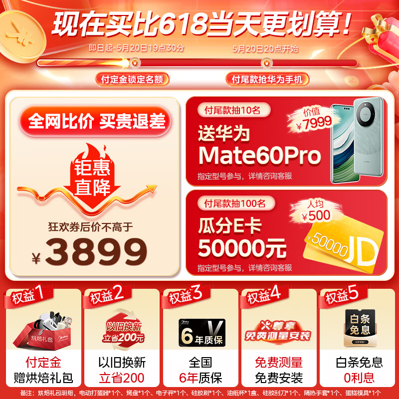 美的(Midea)蒸烤炸一体机嵌入式3合1 TFT彩屏智能交互 Q5Pro 55L大容量搪瓷内胆电蒸烤箱空气炸 BS5058W价格:4299.00元!