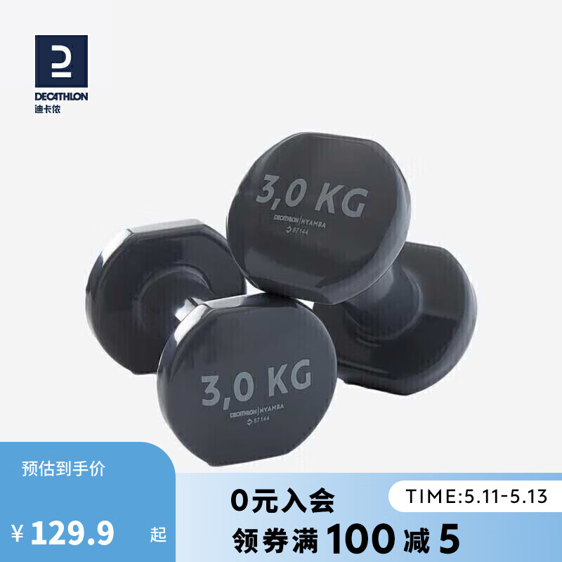 迪卡侬哑铃女士健身家用器材男士儿童一对跳操瘦手臂灰色-3KgX2 712811价格:129.90元!