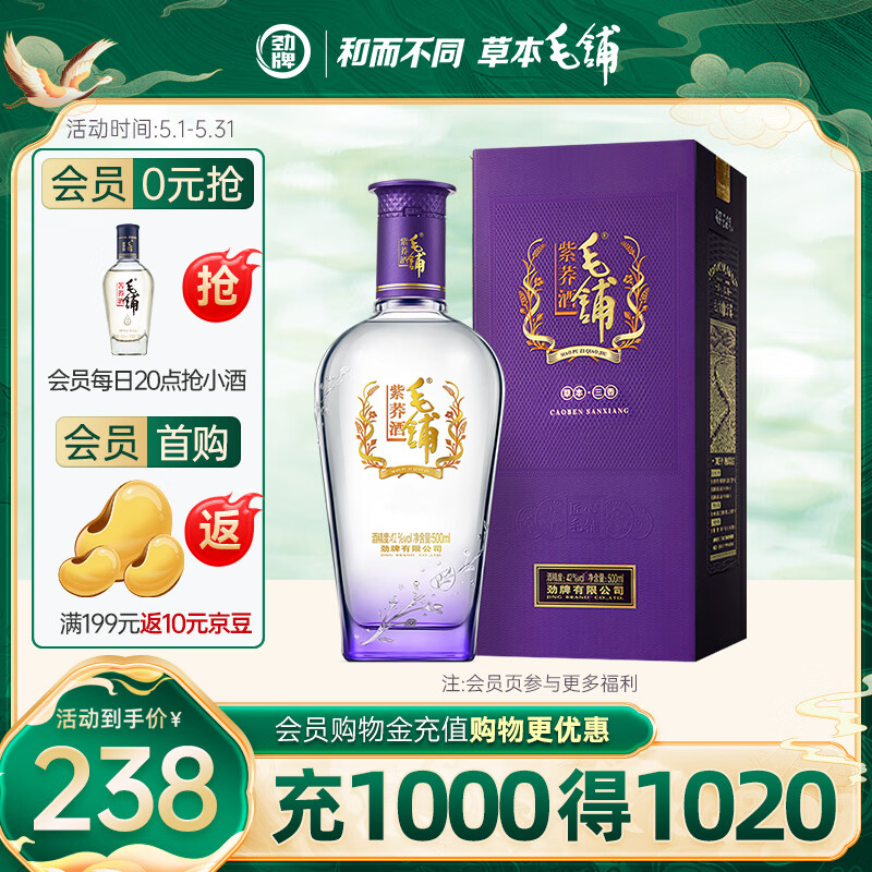 劲牌 毛铺苦荞酒 紫荞 42度 500ml 单瓶价格:238.00元!