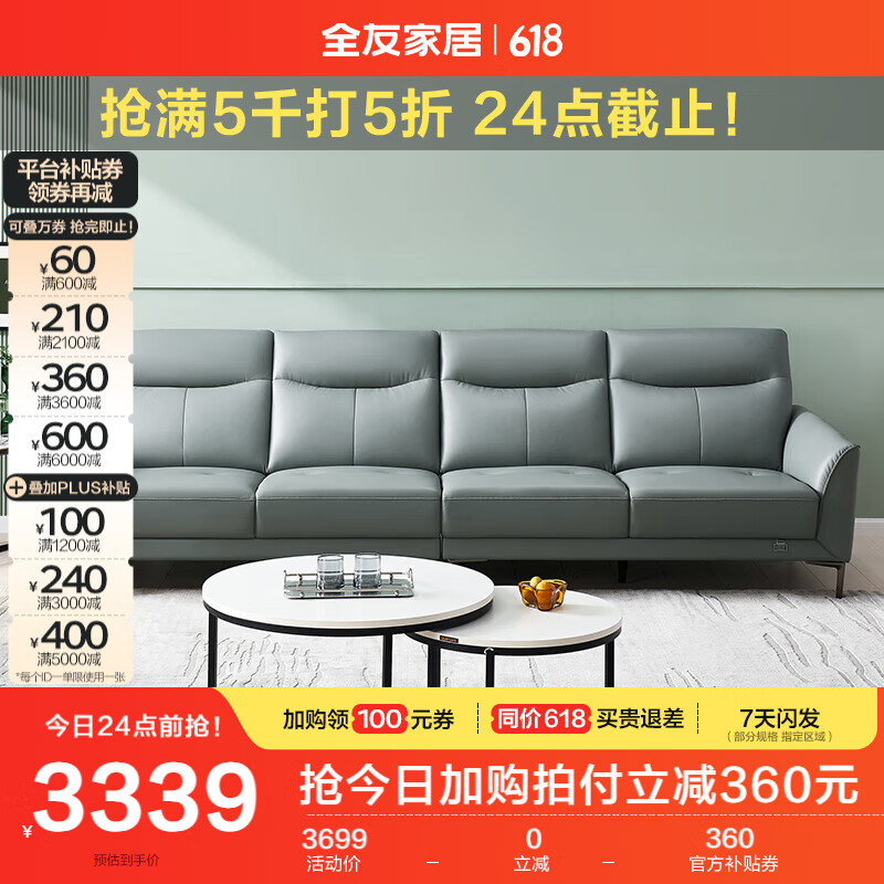 全友家居 真皮沙发 现代简约头层牛皮轻奢风直排式皮艺沙发客厅102710价格:3699.00元!