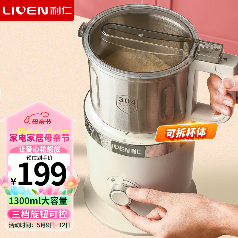 利仁(Liven)研磨机家用磨粉机打粉机中药粉碎机1.3升分体可拆洗料理机干粉机不锈钢打粉超细研磨机 MFJ-J5185价格:199.00元!