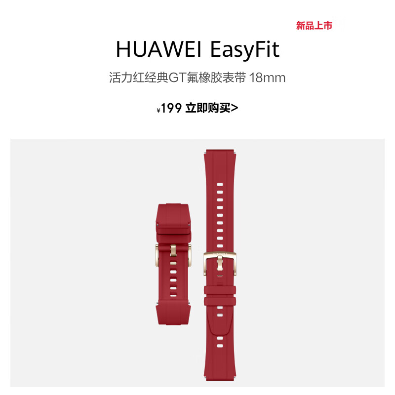 华为 HUAWEI EasyFit 活力红 经典GT氟胶表带 活力红 智能手表表带 18mm仅适用GT4 41mm手表价格:199.00元!